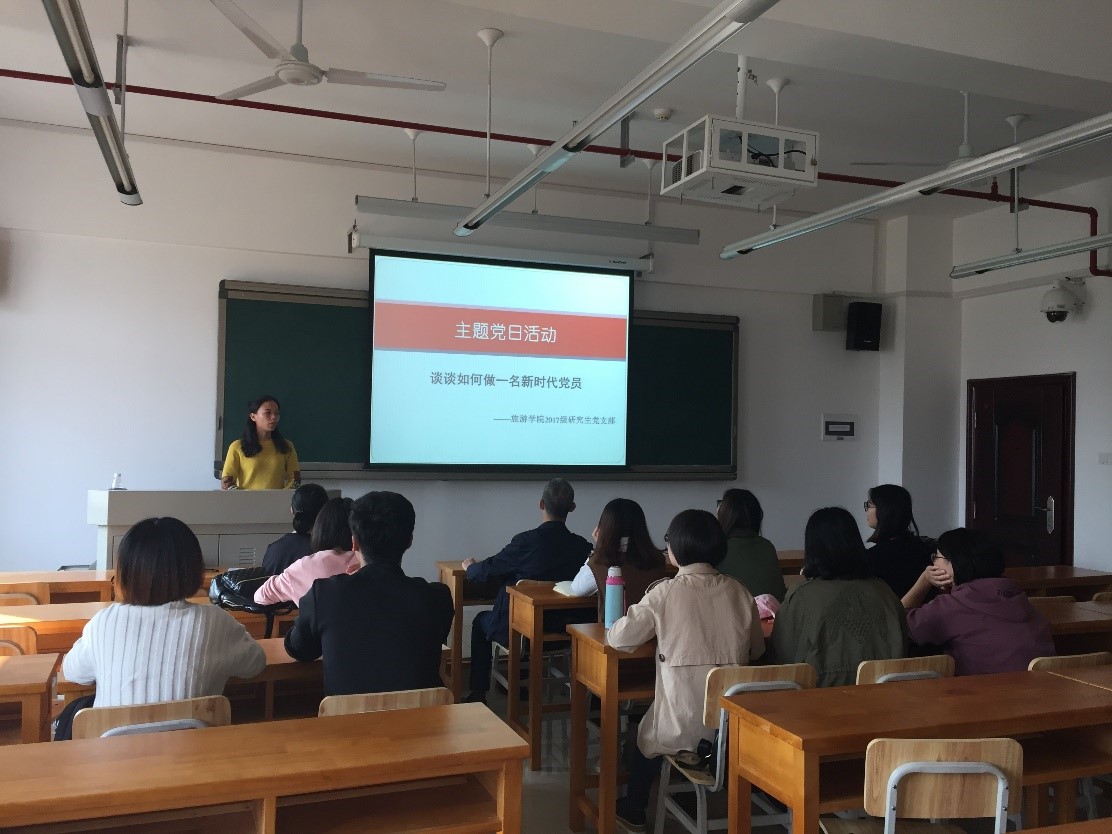 2017年11月8日下午,旅游学院2017级研究生党支部在文综楼南804召开了题为“结合十九大精神,谈谈如何做一名新时代的共产党员...