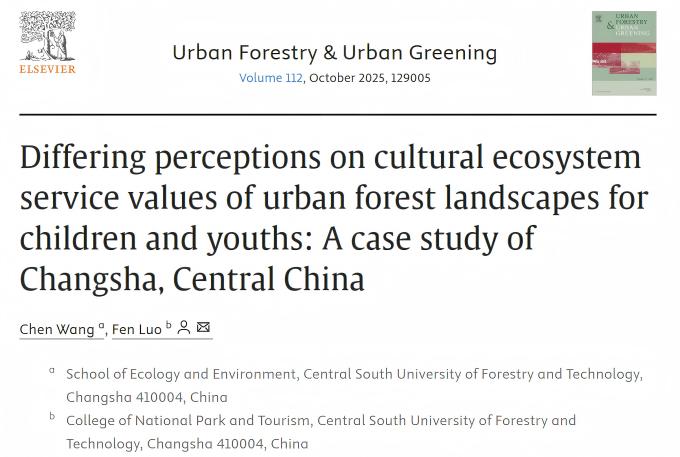 文章基本信息 期刊:URBAN FORESTRY & URBAN GREENING(中科院二区TOP) 英文题目:Differing perceptions on cultural ecosy...