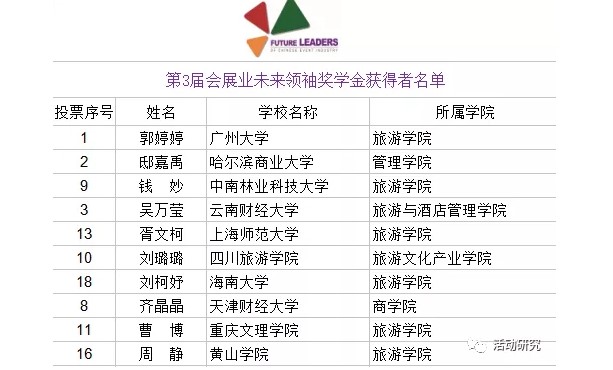 (胡旭晖 钱妙)12月8日,第3届会展业未来领袖奖学金评选结果正式揭晓,我院2016级会展经济与管理专业学生钱妙喜获该奖学金。...