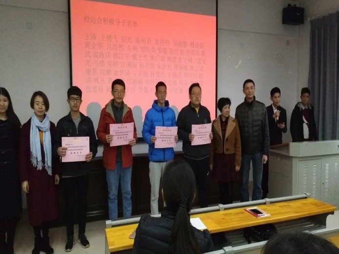 党委副书记洪梅首先介绍了召开此次总结表彰大会的意义,对运动员们所取得的优异成绩表示祝贺,对所有参与组织和后勤服务的老师和学生干部表示感谢。她总结了成绩、介绍了学院设置的表彰奖项和奖励标准也指出了在报名发动力度、训练组织等方面存在的问题。她希望同学们珍惜荣誉再接再励,将运动精神带到学习生活中,争取更大的成绩;同时也要将运动理念和健康的生活方式辐射到班级,让更多的同学参与到体育锻炼中来,锻炼身体,增强体质。会上,与会领导老师为运动员颁发荣誉证书。本次大会的举办,激励了运动员们的拼搏精神,有利于营造良好的运动氛围,使同学们认识到锻炼身体的重要性,提高同学们参加活动的积极性。