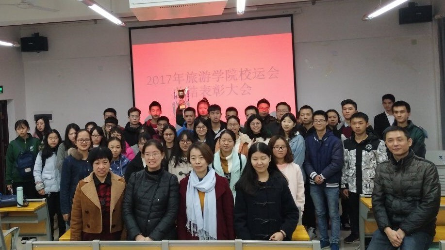 11月21日中午,2017年旅游学院校运会总结表彰大会在文综楼南905教室举行。旅游学院党委副书记洪梅、团委书记曾浩老师、2015级辅导员彭湘宜老师、2017级辅导员范艳霞老师、兼职辅导员李效男、全体运动员和团委学生会学生干部参加此次大会。