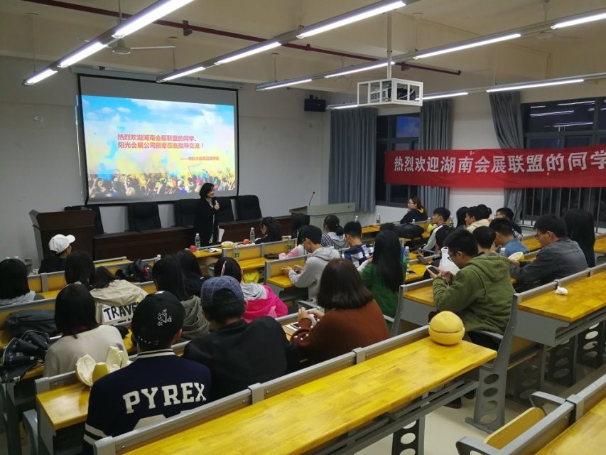 四校联盟全称湖南会展志愿服务联盟,于2017年5月9日在湖南师范大学成立。联盟旨在整合资源,提升学生的会展素养,规范会展兼职市场和实践教学。本次交流会针对四校协会、专业及联盟的见解等方面进行深入探讨与交流。除此之外,阳光会展彭女士以幽默生动的口吻介绍了MICE的具体内涵,着重介绍了同学们不太熟悉的奖励旅游版块,现场互动氛围浓厚,欢笑声不断。我校2014级优秀同学陈昌盛更是针对他所负责的项目进行了专业复盘,并总结了项目经验,陈同学以亲身经历,让会展同学了解了更多会展实际操作方面的知识。湖南省颇具影响力的媒体《潇湘晨报》的记者周舟女士以一个学姐的亲身经历为我们分享了不少过来人的经验,并详细介绍了《潇湘晨报》与湖南会展联盟可能合作的项目。