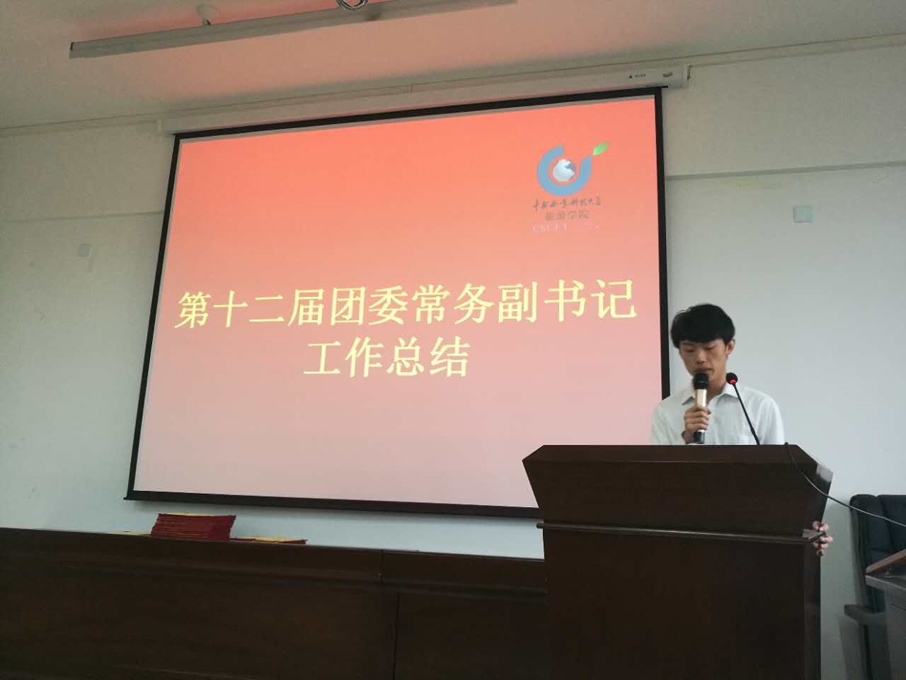 大会最后,由党委副书记洪梅老师进行总结。她首先对十二届团委学生会干部的辛勤工作表示感谢。她希望新一届的团委学生会干部能够敬职敬业,将旅游学院团委学生会打造得更好,并希望未留任的同学也能继续支持团委学生会。最后,她表示第十三届团委学生会将打造一个更好的平台,为学院服务、为学生服务。