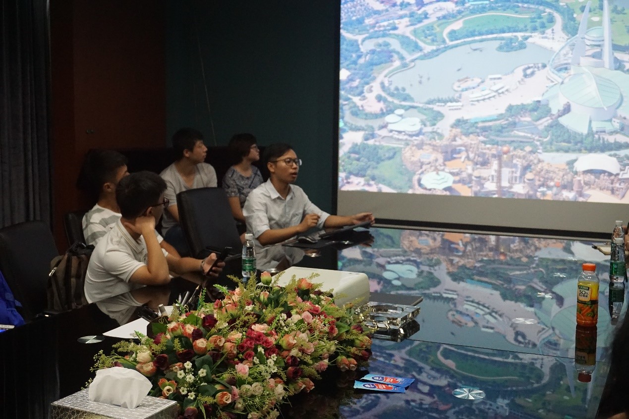 据设计院策划所所长肖家亮向学生介绍他们的主要开发模式是先进行设计再推销发布,由投资商自行挑选,如“绿美人”垂直农场、摩天轮大厦等,也有承接项目再进行策划设计,如常州恐龙园、贵州龙国际山地公园、宝鸡中华礼乐城等。