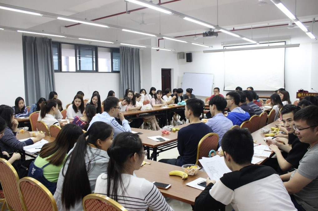 2017年6月5日下午16:00,酒店管理教研室在文科综合楼南910教室举行2013级酒店管理专业毕业生座谈会。参加本次座谈会参会人员有2013级酒店管理专业全体毕业生,以及旅游学院袁建琼副院长、洪梅副书记、专业负责人周志宏教授和酒店管理教研室的老师们。
