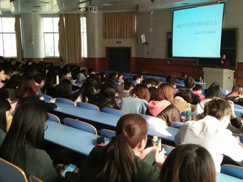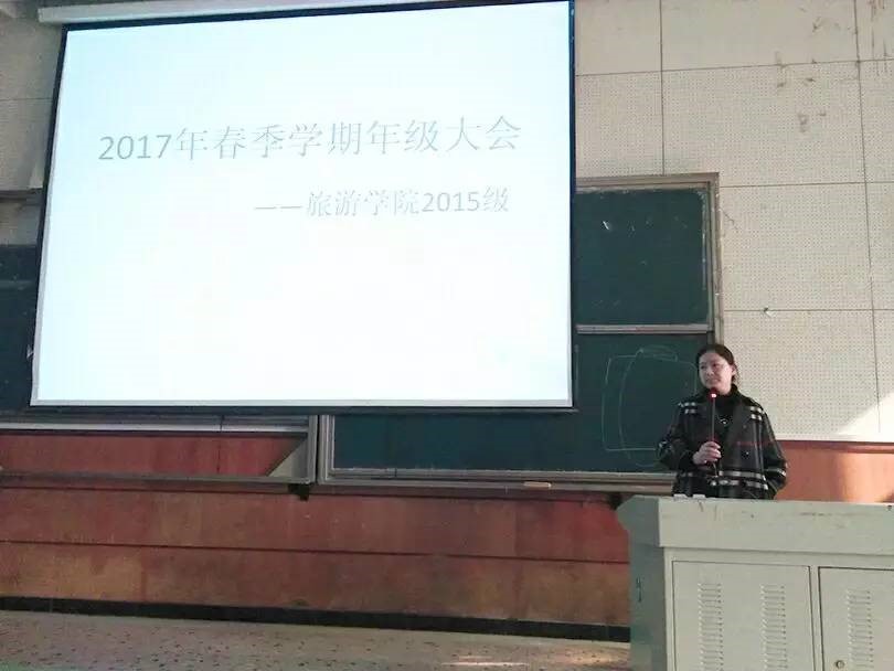 2017年3月8日下午,我院2015级本学期第一次年级大会在生科楼003教师召开,旅游学院党委副书记洪梅老师以及2015级全体学生参加了会议,会议由2015级辅导员范艳霞老师主持。