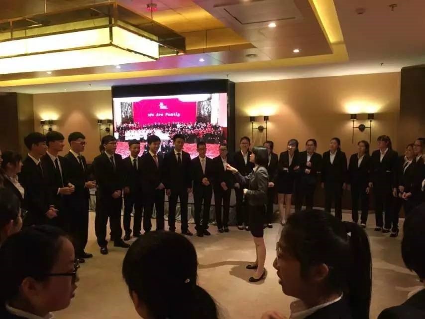 培训经理Renee为同学们上了一堂精彩的专业课,介绍了集团和酒店品牌的历史文化,对酒店人的素质要求,展示酒店为员工举办的一些活动,和慈善活动,充分体现人文关怀,人力资源部副总监张璇女士解答了同学们的问题,从比较专业的角度和亲身经历解决同学们内心的疑惑,酒店经理们以亲切的微笑、专业的语言和行动,诠释着酒店人的专业和责任。