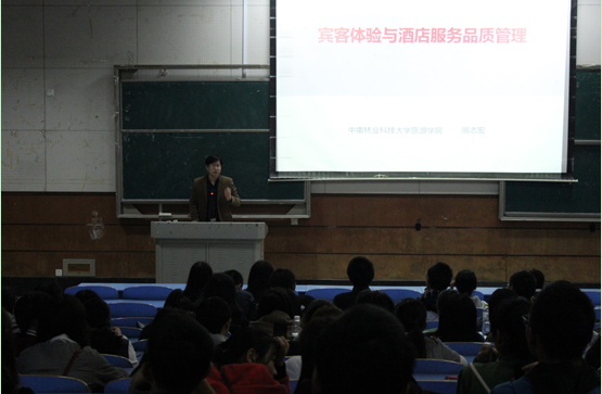周志宏教授从当今酒店管理者面临的压力与挑战和优质服务的内涵展开,运用大量饭店暗访数据分析了酒店服务品质整体发展趋势,深入剖析了酒店服务品质痛点,通过自己多年的酒店服务品质访查经验提出酒店服务品质管理策略。周志宏教授的讲座获得了同学们的多次掌声。