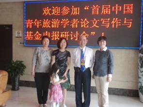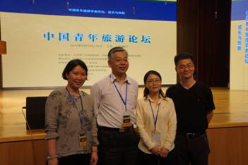 照片从左至右依次为:中南林业科技大学旅游学院刘艳博士、南京大学旅游研究所所长张捷教授、复旦大学旅游学院郭英之教授、中山大学旅游学副院长院张朝枝教授。