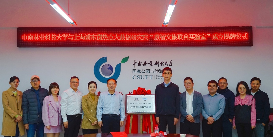 现场,中南林业科技大学党委委员、副校长尹健及蜜度首席技术官、微热点研究院执行院长刘益东共同为联合实验室揭牌;中南林业科技大学国家公园与旅游学院副院长罗芬及蜜度湖南公司副总经理鲍光翔分别代表校企签署《数智文旅联合实验室战略合作协议》。