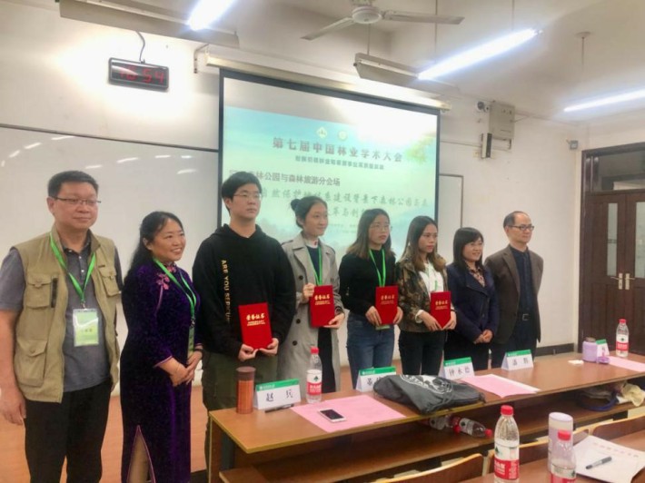 在S21森林公园与森林旅游分会场的研讨会上,钟永德教授作了题为《森林康养之养身与养心》的报告。首先,解读了国家关于森林康养的一些政策;其次,从学术研究的角度,阐述了前人对于森林旅游、生态心理治疗等方面的研究成果,其中谈到吴楚材教授关于空气负离子、植物精气的研究;最后从发展措施的角度,依据相关文件提出了森林康养的“两要三不”,强调艺术与森林的结合——森林冥想,同时发展森林康养需要森林康养师的专业辅导。此外,我院2018级硕士研究生谢莎、周婕、张阅在本会场也分别做了论文汇报,汇报内容得到现场参会人员的浓厚兴趣,并展开了热烈的讨论,同时得到了点评专家的悉心点评和指导。其中,王琛同学和张阅同学提交的会议论文被评为优秀论文,王琛同学荣获二等奖,张阅同学荣获三等奖。(供稿:张阅)