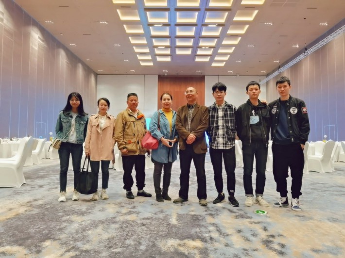 (左起:16会展卢彩丽、周婷老师、湖南创特会展服务有限公司项目经理陈海兵、刘珏老师、谢可夫老师、17会展2班成鹏、17会展2班郭江宇、17会展1班彭凡)