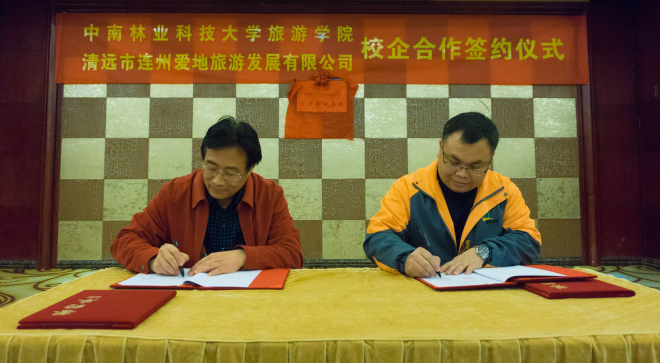 随后,胡建刚书记与何东强副总经理代表双方共同签署了《产学研合作基地协议书》,并为“中南林业科技大学旅游学院实习就业基地”揭牌。