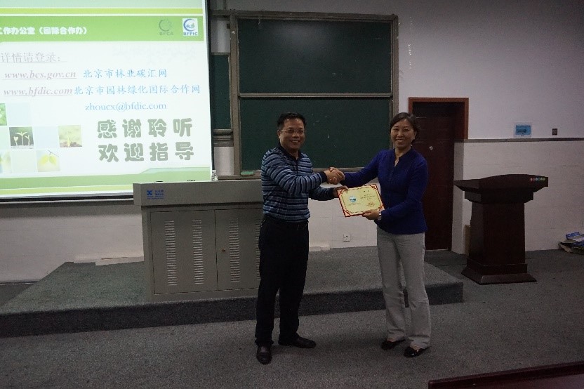 2016年9月29日下午,应中南林业科技大学旅游学院和国家林业局森林旅游工程技术研究中心的邀请,北京市林业碳汇工作办公室(国际合作办)主任周彩贤女士在国际楼115室为我院师生作了题为《北京森林体验教育的探索与实践》的讲座,讲座由国家林业局森林旅游工程技术研究中心谭益民主任主持,学院和中心部分老师以及相关专业学生100余人参加了此次讲座。