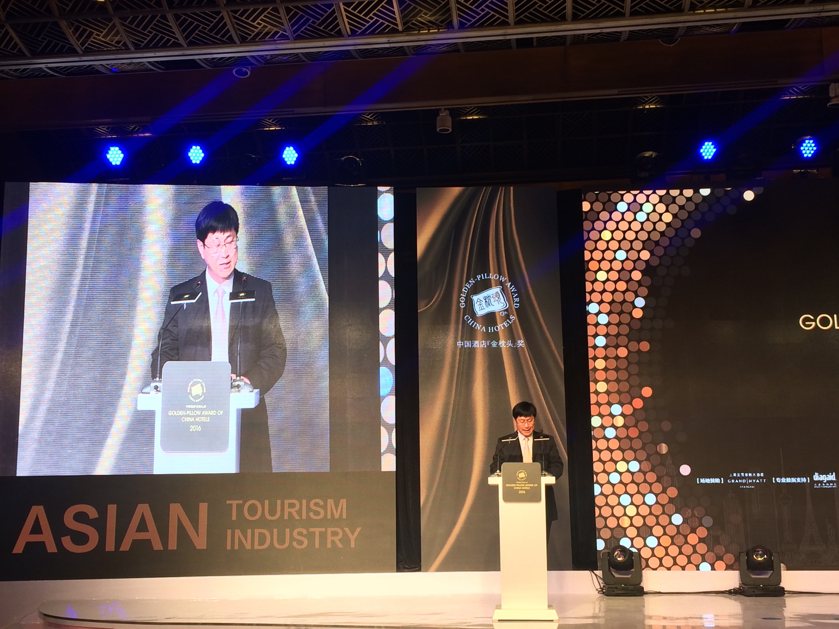 2016年9月2日至3日,由21世纪经济报道与南开大学旅游与服务学院联合主办的“2016亚洲旅游产业年会”,在上海金茂君悦大酒店举行。我院党委书记周志宏教授应邀作为嘉宾出席会议,并在同会举行的第十三届中国酒店“金枕头奖”颁奖典礼上作为评委代表致辞,为亚洲旅游“红珊瑚奖”和中国酒店“金枕头奖”获奖者颁奖。