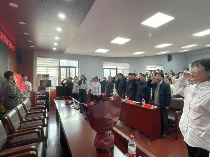 宣讲结束后,在钟主任的带领下,全体党员面向党旗郑重宣誓,用铿锵有力的誓言表达了他们对党的忠诚和入党的决心。陈佳瑜同学代表全体新发展党员发言,表达了传承先辈精神,坚定理想信念,坚定不移听党话、跟党走的理想信念,以及始终把使命放在心上,把责任扛在肩上,立志做有理想、敢担当、能吃苦、肯奋斗的新时代好青年的决心和志向。