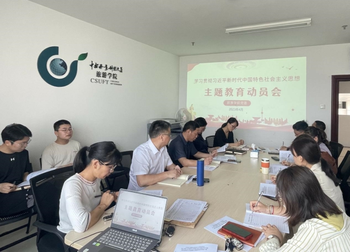 4月21日上午,旅游学院党委在博文楼北1108组织召开学习贯彻习近平新时代中国特色社会主义思想主题教育动员会。学院党政领导班子、全体支部书记参会,会议由党委书记李波涛主持。