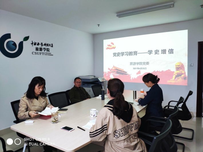 4月25日,旅游学院党委中心组在博文楼北1108开展了党史学习教育学史增信专题的学习。