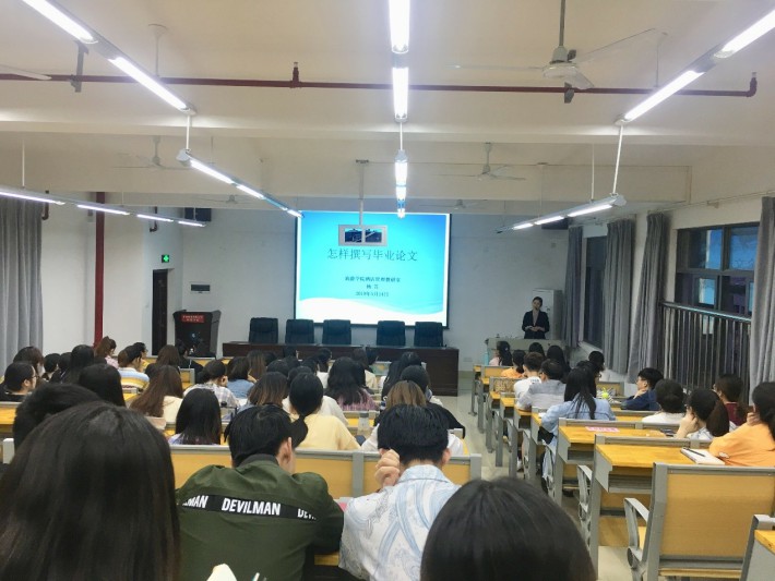 2019年5月14日晚上,2016级酒店管理专业毕业论文撰写指导讲座在文综楼南905教室召开。本次指导讲座由酒店管理系主任杨芳老师主讲,酒店管理系的老师和2016级酒店管理全体学生参加了本次讲座。
