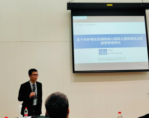本次会议从提交了全文的196篇会议论文中遴选了54篇论文分设“新时代旅游供给与旅游管理”、“旅游综合效益评估与区域协调发展”、“文化旅游与文化自信”、“国家公园与绿色发展”等6个分论坛。我院硕士研究生王根茂在“国家公园与绿色发展”分论坛做了汇报交流,引起现场热烈反响。