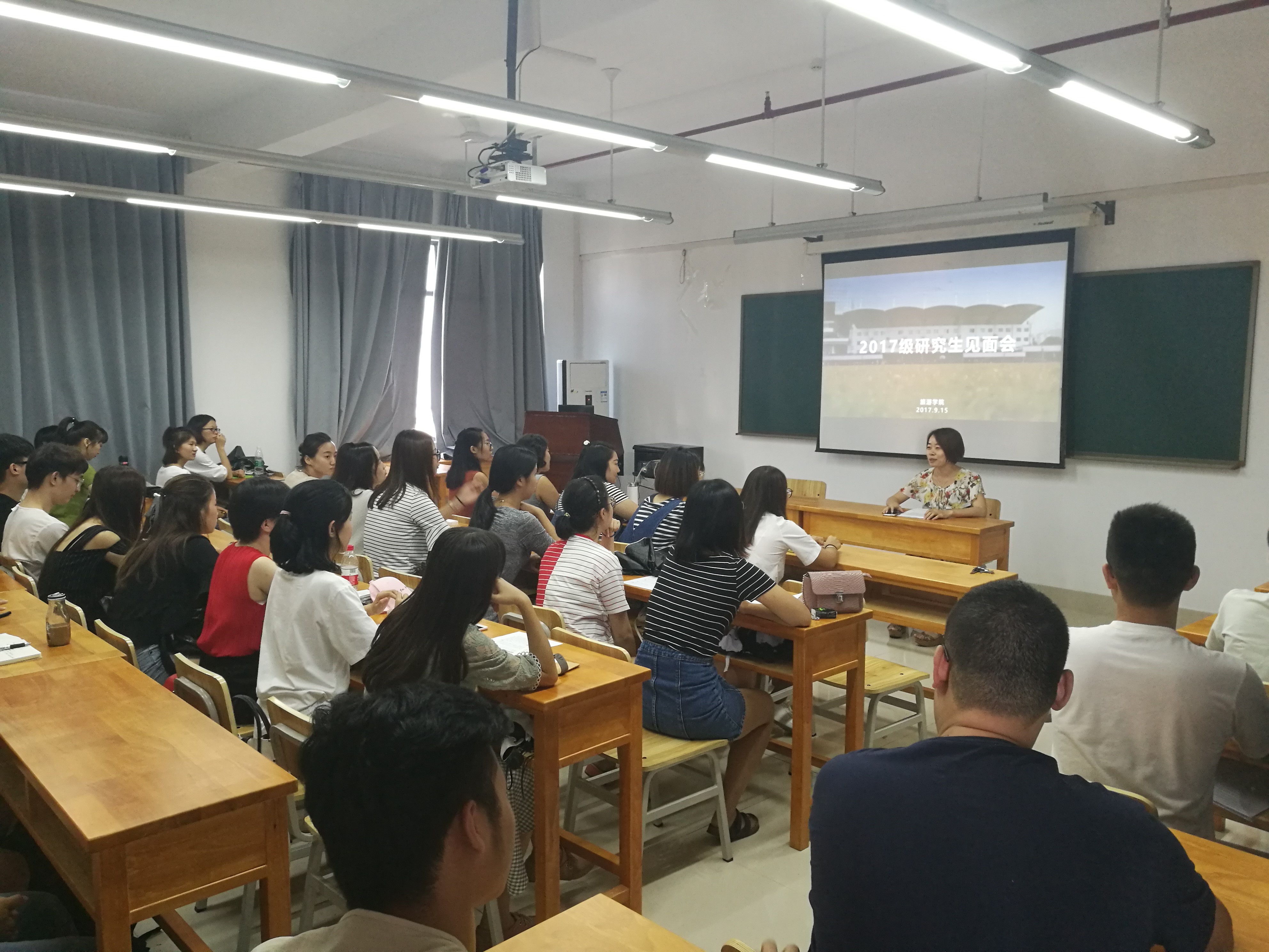 9月15日,旅游学院2017级研究生见面会在文综楼南1004举行。院党委胡建刚书记、钟永德院长、戴美琪副院长、二级心理咨询师范艳霞老师出席见面会。本次见面会由研究生秘书胥俊老师主持。