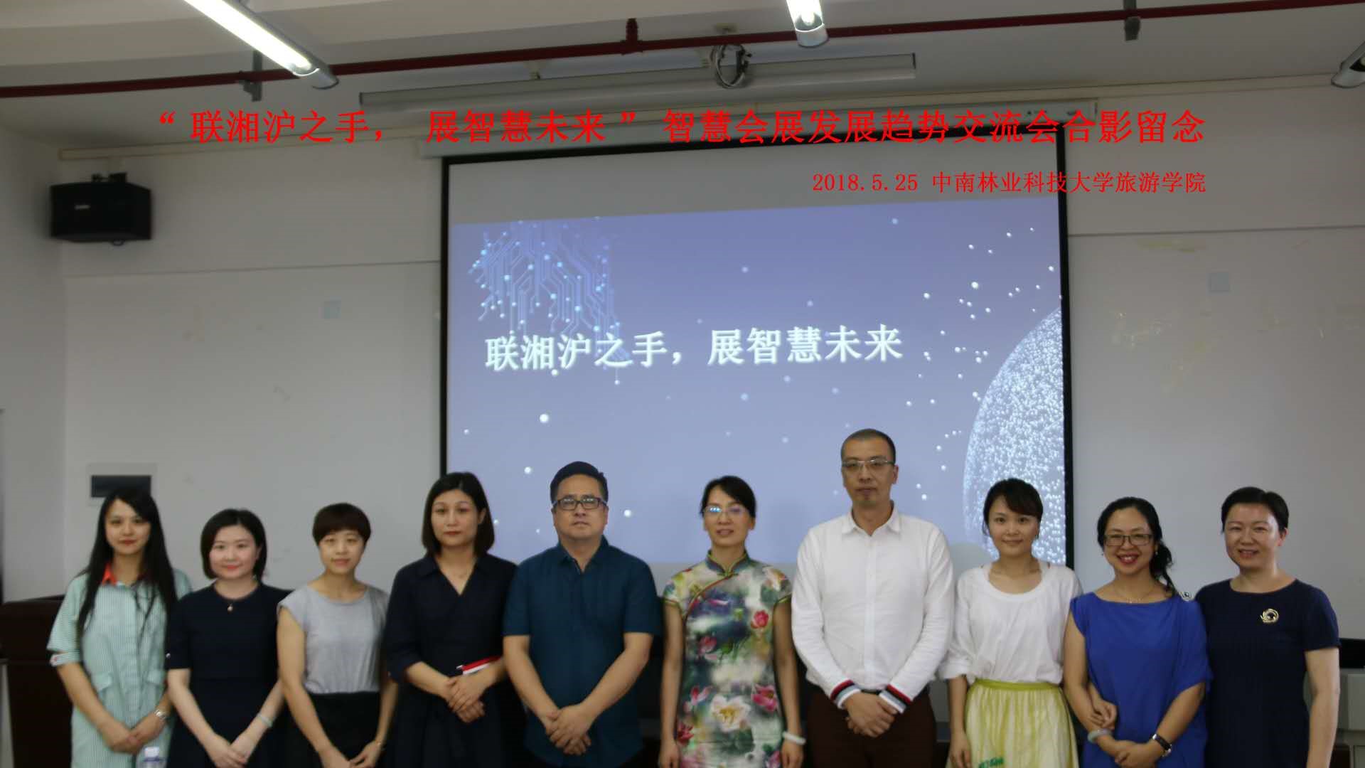 5月25日下午,由中南林业科技大学旅游学院会展教研室主办的“联湘沪之手,展智慧未来――智慧会展发展趋势交流会”暨与上海联展软件技术有限公司和红星会展公司实践教学基地签约及授牌仪式于文综楼南905顺利举行。