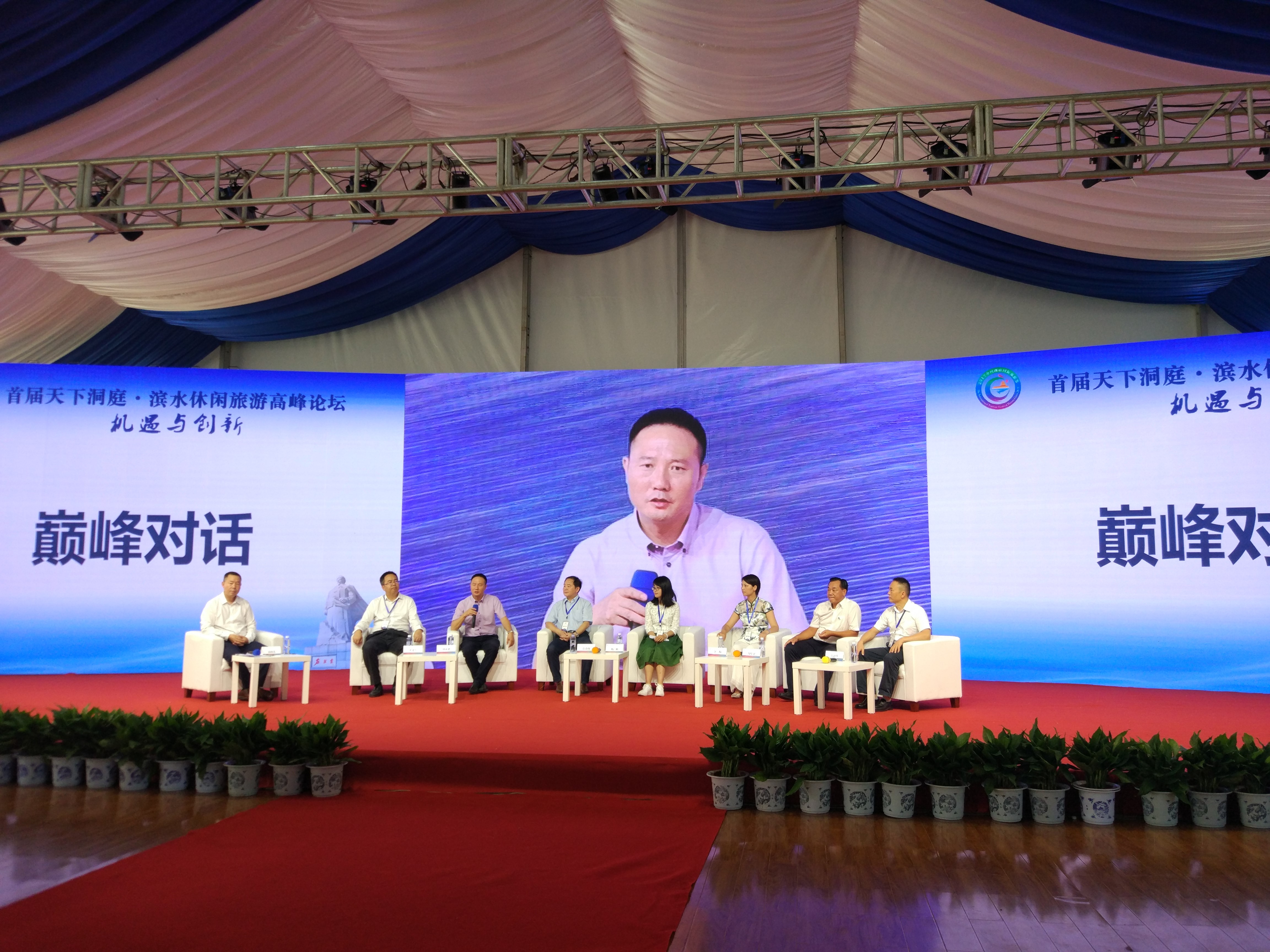926日上午,“2017中国湖南国际旅游节”开幕式系列活动之“首届天下洞庭·滨水休闲旅游高峰论坛”在岳阳市湘阴县顺天洋沙湖国际旅游度假区举行。旅游学院院长钟永德教授作为7位对话嘉宾之一应邀出席,戴美琪副院长、罗明春、邹宏霞、杨芳和谢冽老师及研究生代表应组委会的邀请,参加了此次盛会。