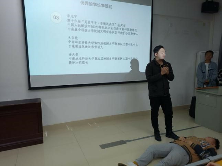 第三个部分为急救技能演示。本次演示的人员有宋光宇、火宗乾、许天姿,内容为最常用的心肺复苏术和海姆立克法,采用的教学方式是讲解+演示,详细了讲解在急救过程中的几个关键点和注意事项,耐心细致地解答了同学们的提问,现场随机邀请了几位同学上台模拟演示。生命只有一次,熟练掌握急救技能,在关键时刻对他人提供有效帮助,贡献属于当代大学生的一份力量。