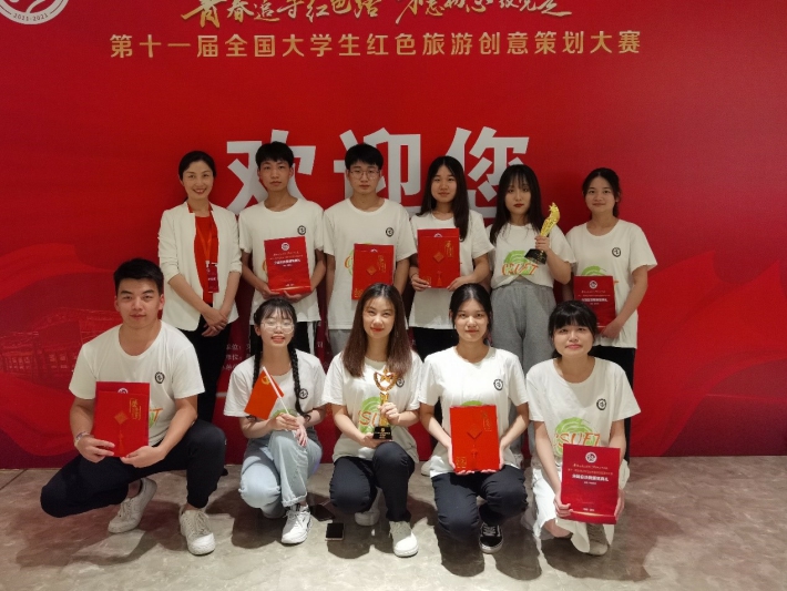 总决赛中,由旅游学院杨芳老师指导,2019级会展经济与管理专业贺娟琴、2019级酒店管理专业罗清妹、金晓燕、陈子懿、李敏组成的木兰队以作品《百年巾帼·红》获得红色故事微漫画特等奖;旅游学院张清老师指导,2019级旅游管理专业旅游信息化方向秦若萱、向智、秦映华、周晨辉、许驰组成的星火队以作品《百年红船,南湖启航》获得红色旅游线路设计一等奖;同时获得全国优秀组织奖1项,全国优秀指导教师奖2项。