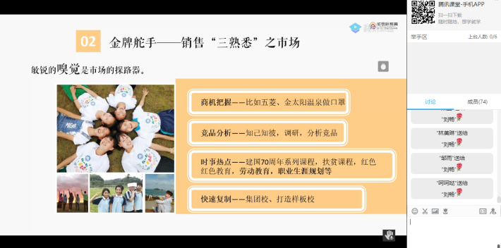 2020年5月26日晚上7:00-9:30,湖南锦华国际旅行社(IE国际教育)课程总监刘畅女士通过腾讯会议给学生带来了一场精彩旅游市场营销的云讲座。在讲座中,刘总不仅分享了自己进行旅游市场营销的经验和技巧,还用实际案例给学生们解读旅游营销的方法和技巧,并发布旅游营销策划方案比赛的主题和规则。