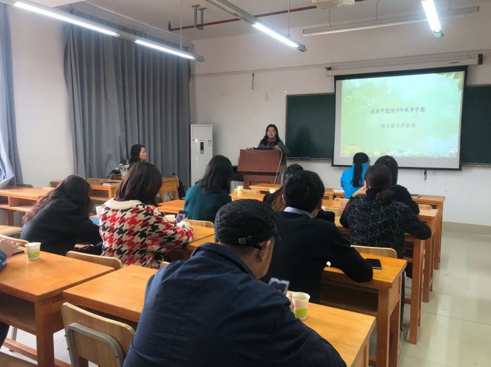 2019年11月21日下午三点,学院2019年秋季学期班主任工作会议在博文楼南1004顺利召开,各年级班主任参加了会议。本次会议邀请到了我校心理中心主任袁红梅副教授到场进行心理健康相关知识分享,学院党委副书记洪梅出席并主持会议。