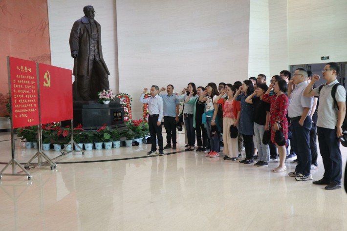 在任弼时纪念馆,学院全体党员面向党旗,庄严肃立,重温入党誓词。展馆展示了任弼时同志在建团、建党、建军、建国四个方面的丰功伟绩,生动地再现了任弼时同志坚守初心、追求真理、脚踏实地、不辞重负的骆驼精神和为革命事业不息奋斗、光辉灿烂的一生。