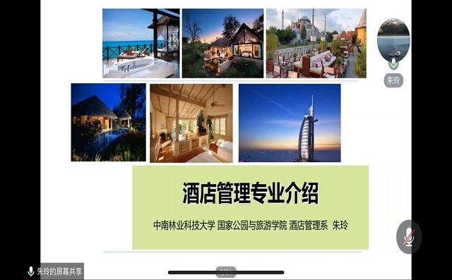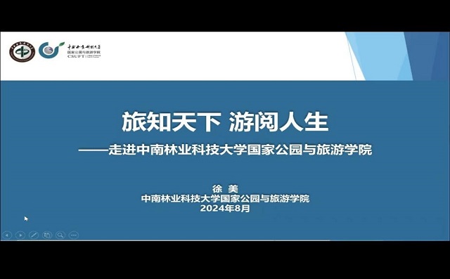 随后,副院长徐美《旅知天下 游阅人生——走进中南林业科技大学国家公园与旅游学院》为题,从办学历史、学科建设、师资队伍、学术排名、人才培养、就业情况、特色品牌等方面对学院情况进行了详尽介绍。