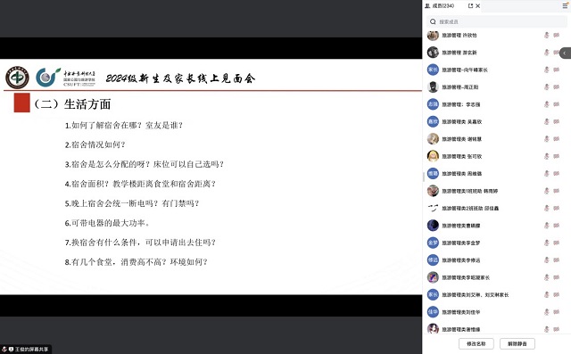 为让同学们更快更好地了解和适应大学生活,会前学院收集了2024级新生及家长提出的学习、生活、新生适应等问题。专业介绍结束后,徐美、张卓对新生和家长关心的问题进行了一一解答。