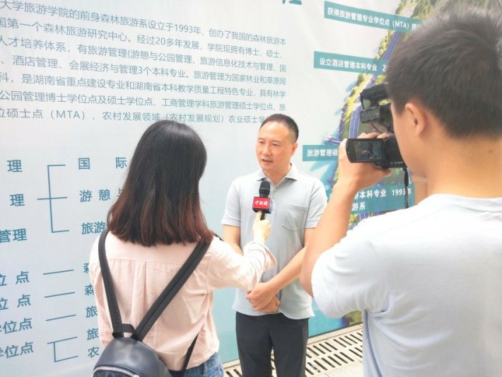 学院院长钟永德说,在中南林业科技大学召开2019年湖南省旅游行业校园招聘会,是文化旅游融合后湖南省旅游行业协会、旅游院校、共同组织的湖南省规模最大一次人才供需会,聚焦湖南省旅游产业发展的人才需求与培养,搭建更好的校企合作、供需对接、发展共赢的平台,全力促进湖南省旅游院系2019届毕业生高质量就业。
