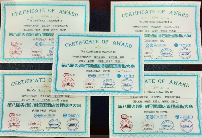 大赛分为初赛、复赛和决赛三个阶段,决赛分为酒店经营管理的线上模拟、英文团队介绍和现场商业演示三个环节。模拟比赛集中一天共进行6个回合模拟对决,在商业演示环节,各团队根据组委会提供的案例进行分析并做好PPT现场演示,资深名校教授和企业高管组成的评委团对学生的演示进行提问和点评。烽芒毕露团队凭借精彩的汇报内容和现场的优秀表现得到评委的一致好评,在总决赛中取得了一等奖的好成绩。