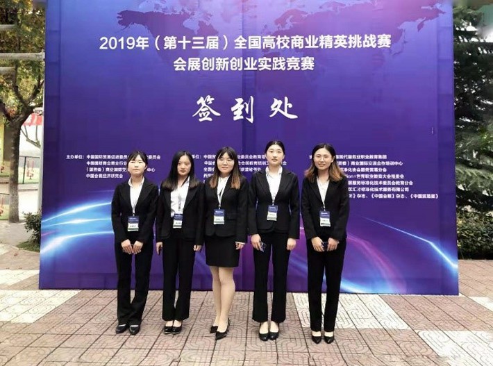 (左起:会展经济与管理专业王玲、李文丽、李颂楠、王婧、孙照娜同学)
